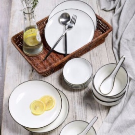 UP简约欧式陶瓷餐具餐盘餐碗勺子17头套装点心骨瓷饭碗