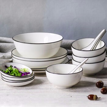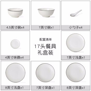 UP简约欧式陶瓷餐具餐盘餐碗勺子17头套装点心骨瓷饭碗
